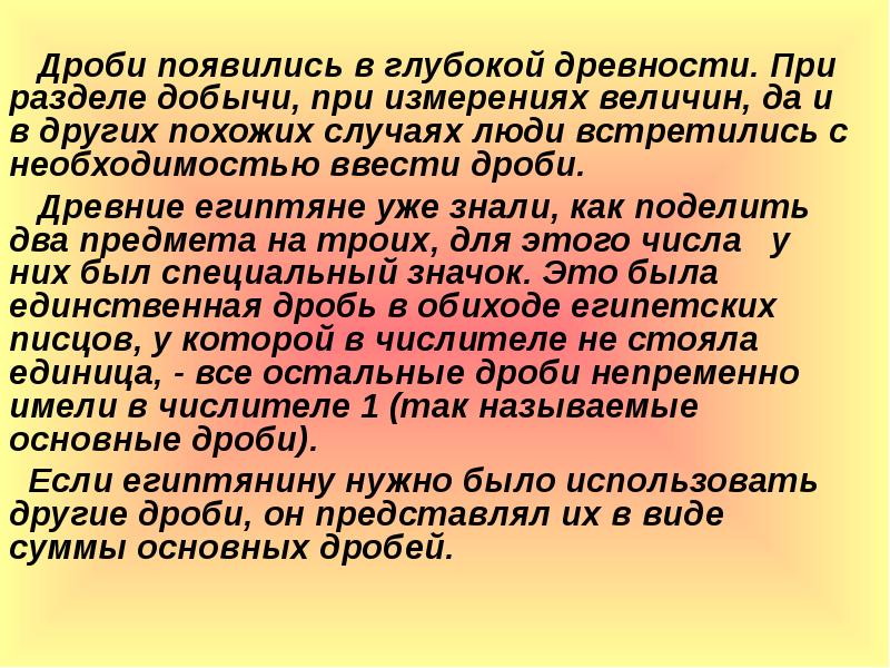 - 14. В древней Руси основными дробями были: 1/2- «половина» или «пол»; 1/3-