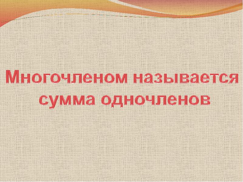 - 2. Многочленом называется сумма одночленов. Например : Одночлены, из которых