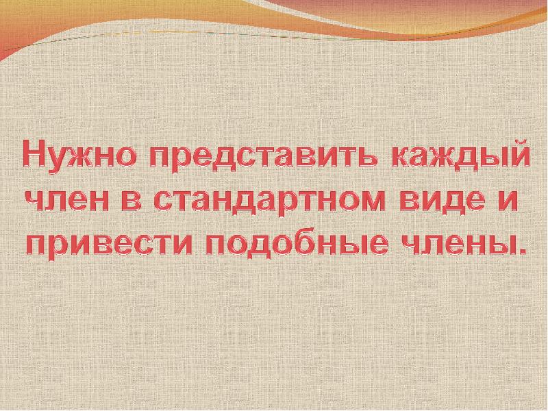 - 3. Приведите подобные члены многочлена Каждый член многочлена является одночленом стандартного