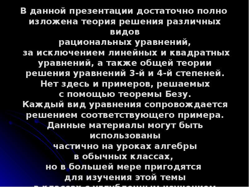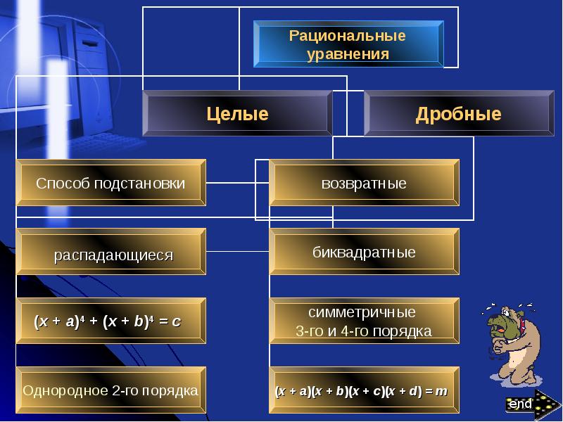 - 5. Способ подстановки При решении некоторых целых рациональных уравнений есть смысл ввести