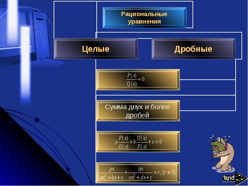 - 7. Распадающееся уравнение Рациональное уравнение называется распадающимся, если его можно привести к