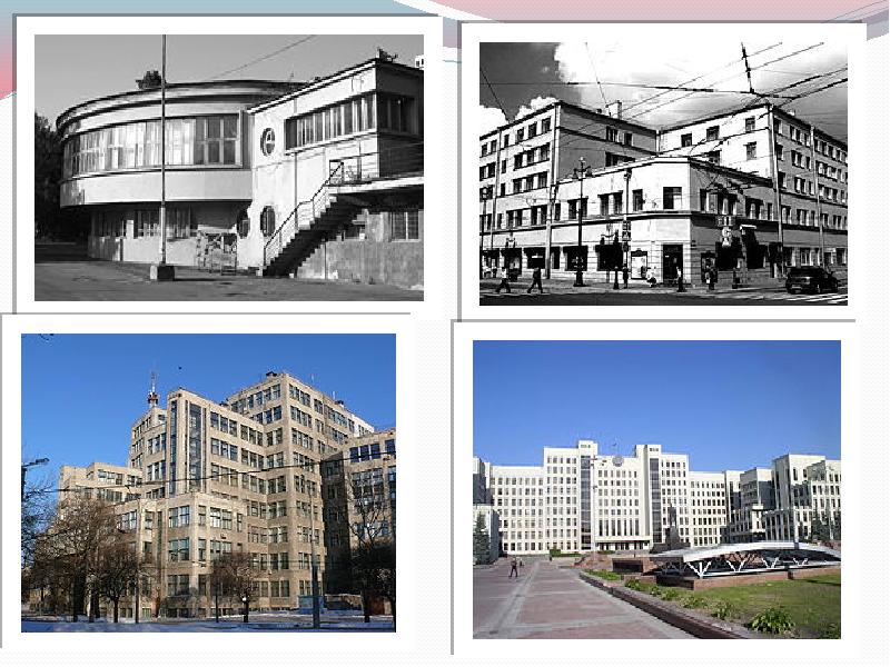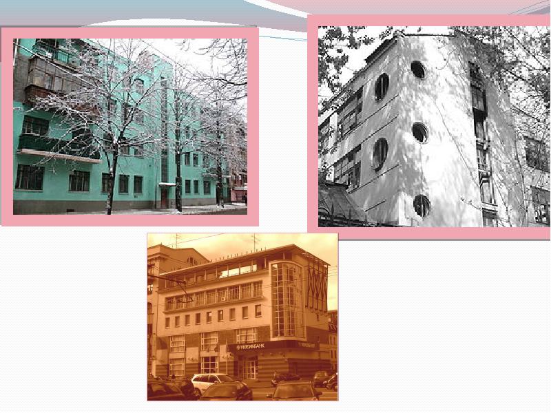Характеризуется строгостью, геометризмом, лаконичностью форм и монолитностью внешнего облика. В 1924 году была создана официальная творческая организация конструктивистов — ОСА, представители которой разработали так называемый функциональный метод проектирования, основанный на научном анализе особенностей функционирования зданий, сооружений, градостроительных комплексов. Характерные памятники конструктивизма — фабрики-кухни, Дворцы труда, рабочие клубы, дома-коммуны указанного времени.