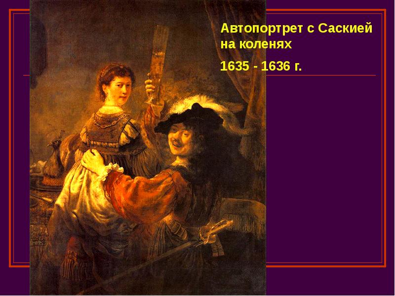 - 24. Домашнее задание Проанализировать «Автопортрет с Саскией на коленях» по рекомендациям со
