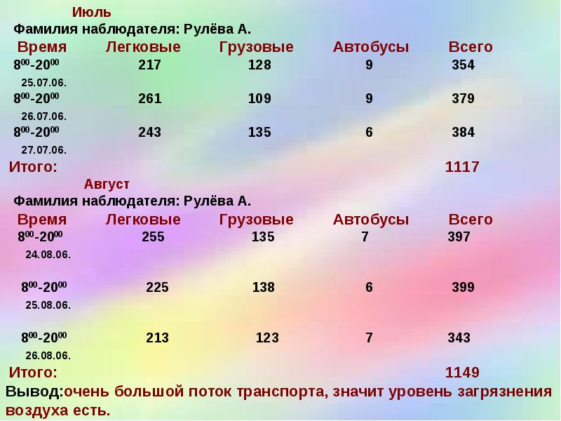 - 12. Определение уровня загрязнения воздуха автотранспортом в окрестностях п.Кривцы