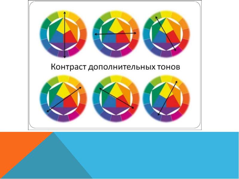- 10. Дополнительные цвета Проводя в цветовом круге диаметр через цвет можно найти