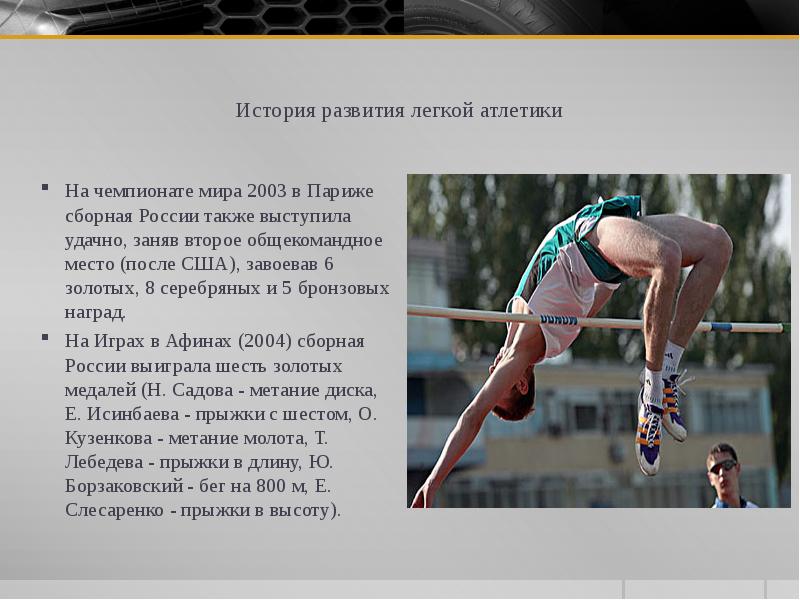 - 20. История развития легкой атлетики На чемпионате мира 2003 в Париже сборная