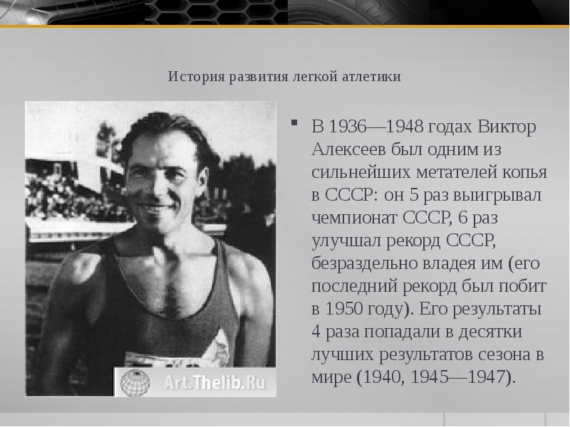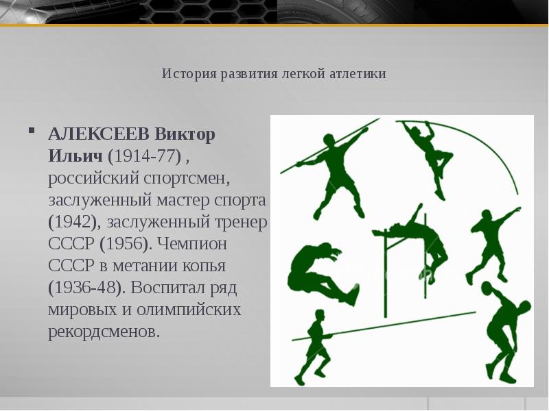 - 21. История развития легкой атлетики АЛЕКСЕЕВ Виктор Ильич (1914-77) , российский спортсмен,