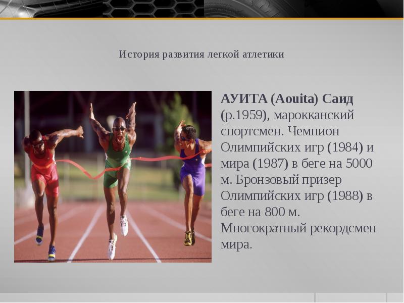 - 23. История развития легкой атлетики АУИТА (Aouita) Саид (р.1959), марокканский спортсмен. Чемпион