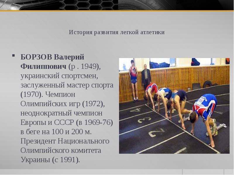 - 24. История развития легкой атлетики БОРЗОВ Валерий Филиппович (р . 1949), украинский