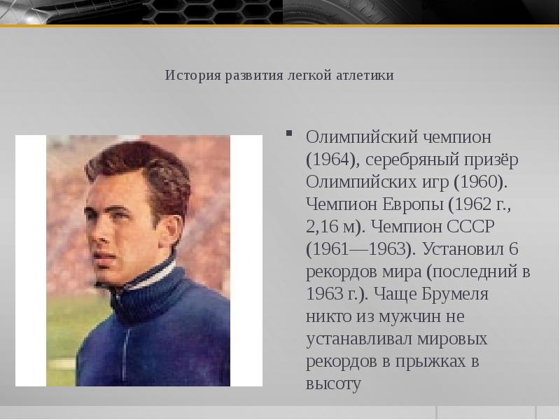 - 29. История развития легкой атлетики Олимпийский чемпион (1964), серебряный призёр Олимпийских игр