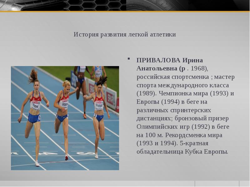 - 34. История развития легкой атлетики ПРИВАЛОВА Ирина Анатольевна (р . 1968), российская