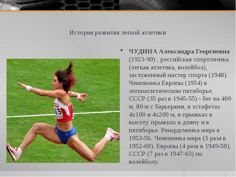 - 35. История развития легкой атлетики ЧУДИНА Александра Георгиевна (1923-90) , российская спортсменка