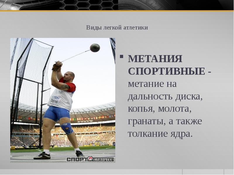 - 6. Виды легкой атлетики МЕТАНИЯ СПОРТИВНЫЕ - метание на дальность диска, копья,