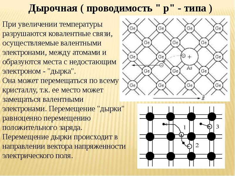 - 10. Механизм проводимости у полупроводников Общая проводимость чистого полупроводника складывается из
