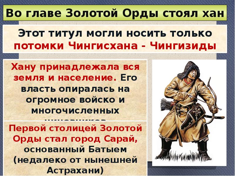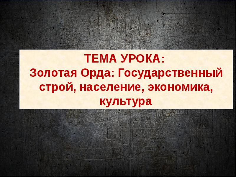ТЕМА УРОКА: Золотая Орда: Государственный строй, население, экономика, культура презентация