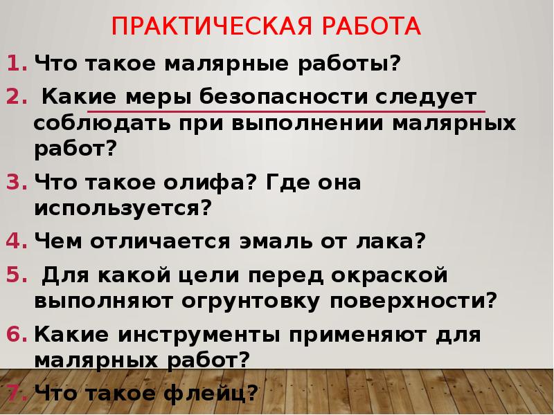 - 32. Практическая работа Что такое малярные работы? Какие меры безопасности следует