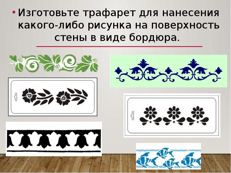- 33. Изготовьте трафарет для нанесения какого-либо рисунка на поверхность стены в виде
