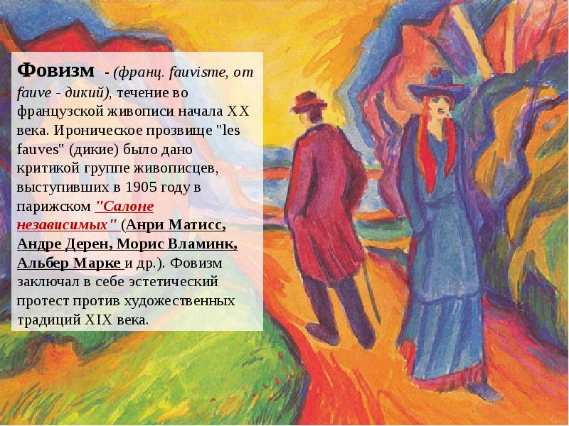- 3. Основные черты фовизма открытые яркие цвета простые очертания форм отказ от