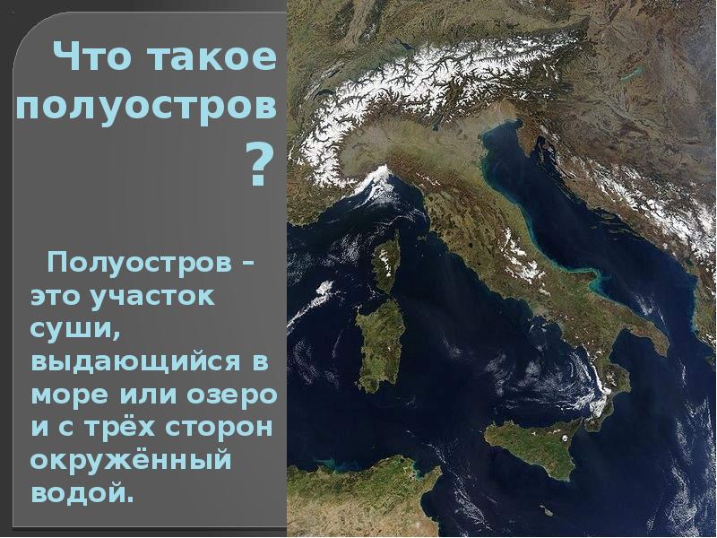 - 9. Что такое полуостров? Полуостров – это участок суши, выдающийся в