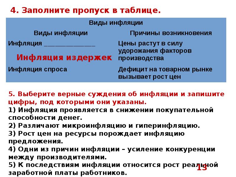 - 13. Виды инфляции Сбалансированная инфляция — цены различных товаров остаются неизменными друг