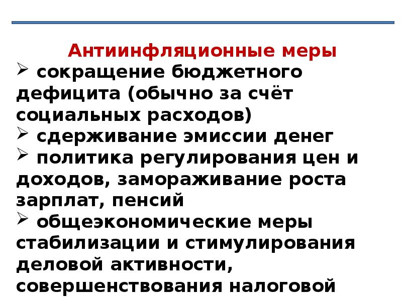 - 19. МЕРЫ БОРЬБЫ С ИНФЛЯЦИЕЙ (всегда будут комплексными)