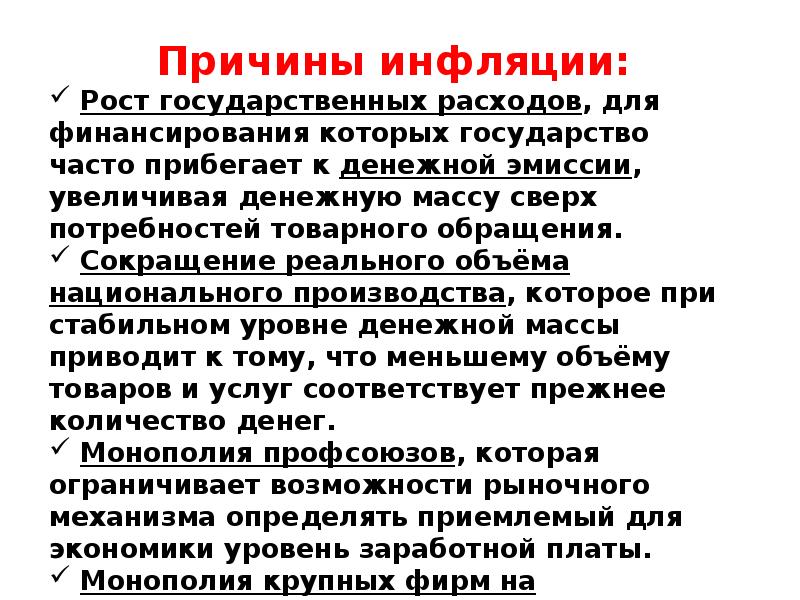 - 9. ПРИЧИНЫ ИНФЛЯЦИИ
