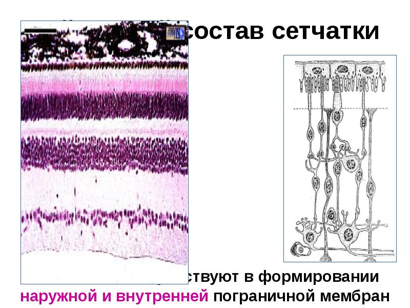 - 15. Сетчатка Пигментный слой Собственно сетчатка (нейроны и элементы глии - клетки