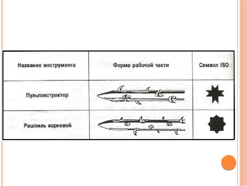 - 20. Корневой рашпиль ( «крысиный хвост»). Напоминает пульпоэкстрактор, имеет 30 или