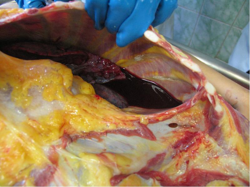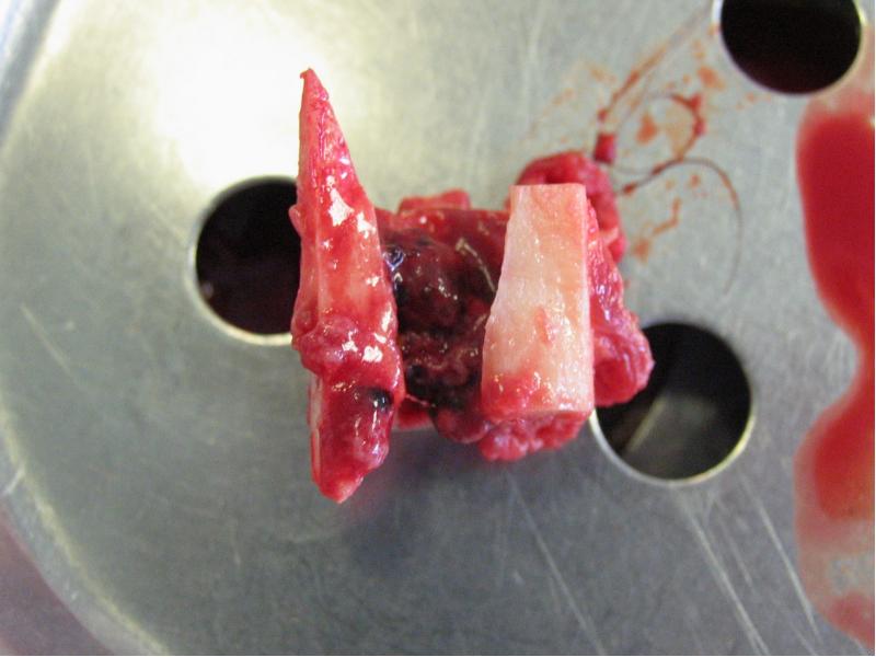 - 88. Костный мозг грудины, ребер умеренно гиперплазирован, сочный, серо-малиновый. Вскрыт мозговой канал