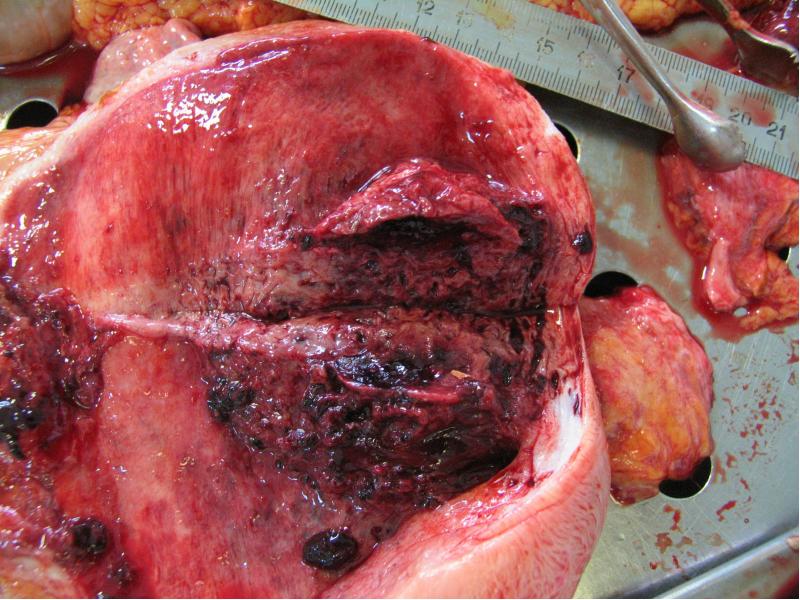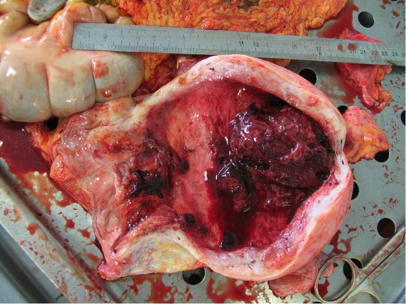 - 20. Инвазивный пузырный занос, тело матки (инвазия в глубокие слои миометрия)