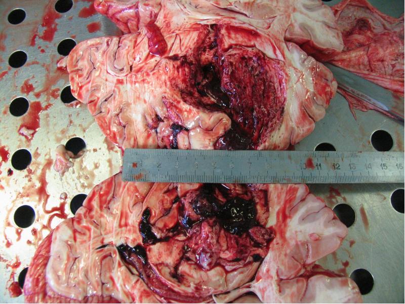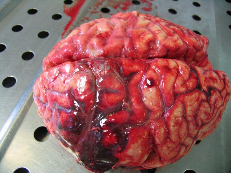 - 84. Головной мозг: Кости черепа целы. Твердая мозговая оболочка перламутровая, с участками