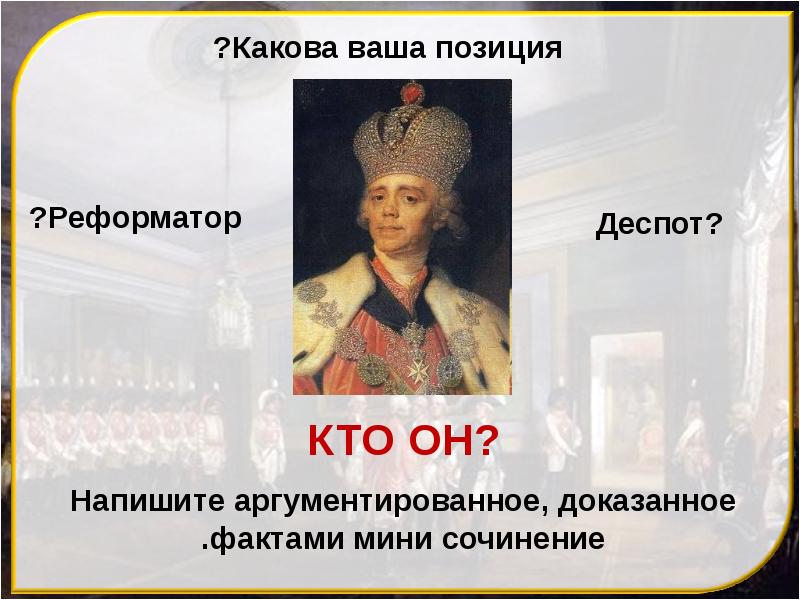 - 16. Император Павел I вступил на престол 6 ноября 1796 года