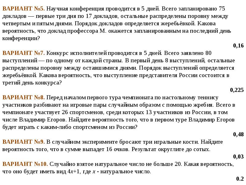 - 7. На экзамене по геометрии школьнику достается один вопрос из списка экзаменационных