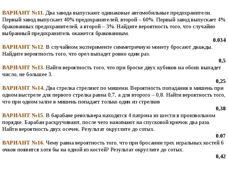 - 17. Ларин. Вариант № 28. Вероятность того, что на тесте по биологии учащийся верно решит больше 11задач, равна 0,67. Вероятность того, что учащийся верно решит больше 10 задач, равна 0,74.Найдите вероятность того, что будет верно решено ровно 11 задач.