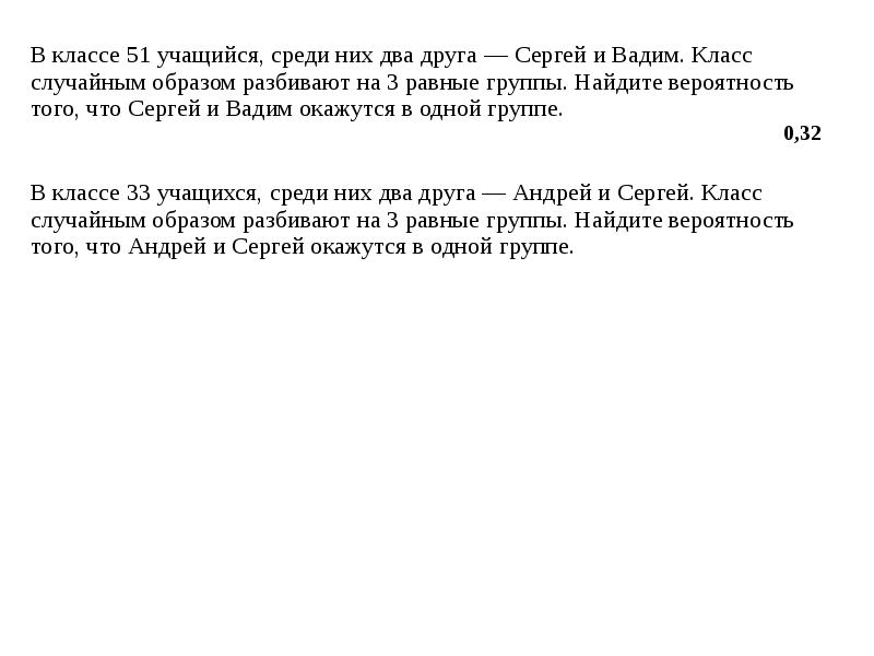 - 38. Ларин. Вариант № 26. У мальчика есть 8 шариков 6 белых и 2 красных. Он раскладывает их наугад в две коробочки по 4 шарика. Найдите вероятность того, что красные шарики окажутся в разных коробочках. Ответ округлите до сотых.