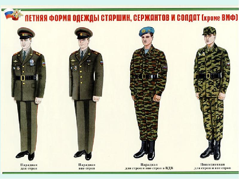 - 19. Военная форма одежды Военная форма одежды- это общее название всех предметов