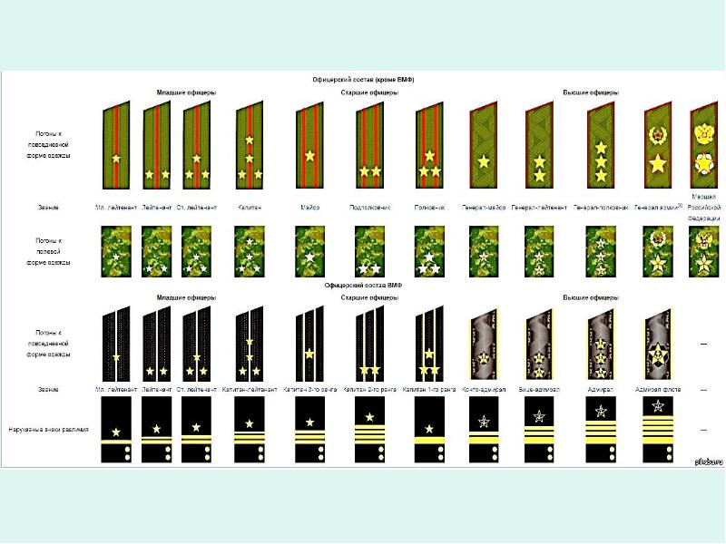 - 34. ВОИНСКИЕ ЗВАНИЯ Каждому военнослужащему присваивается воинское звание в порядке, установленном соответствующим