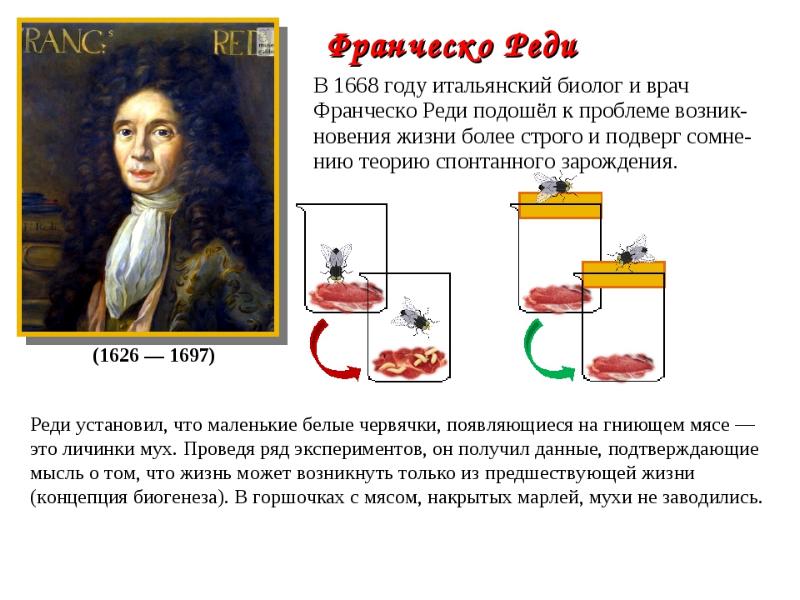 - 6. Гипотеза биогенеза Живое только от живого Ученые – Франческо Реди,