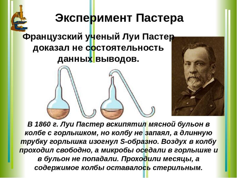 - 8. Опыт Ладзаро Спалланцани (1765 г.) Кипятил мясной и овощной бульон в