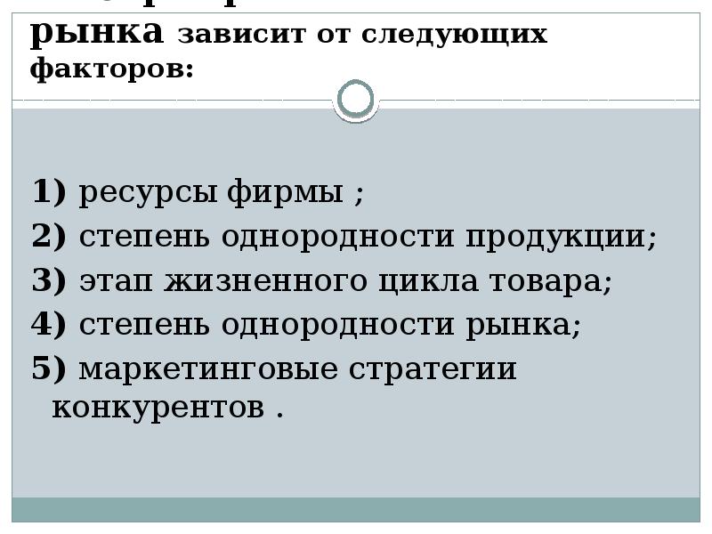 - 12. Выбор стратегии охвата рынка зависит от следующих факторов: 1) ресурсы фирмы