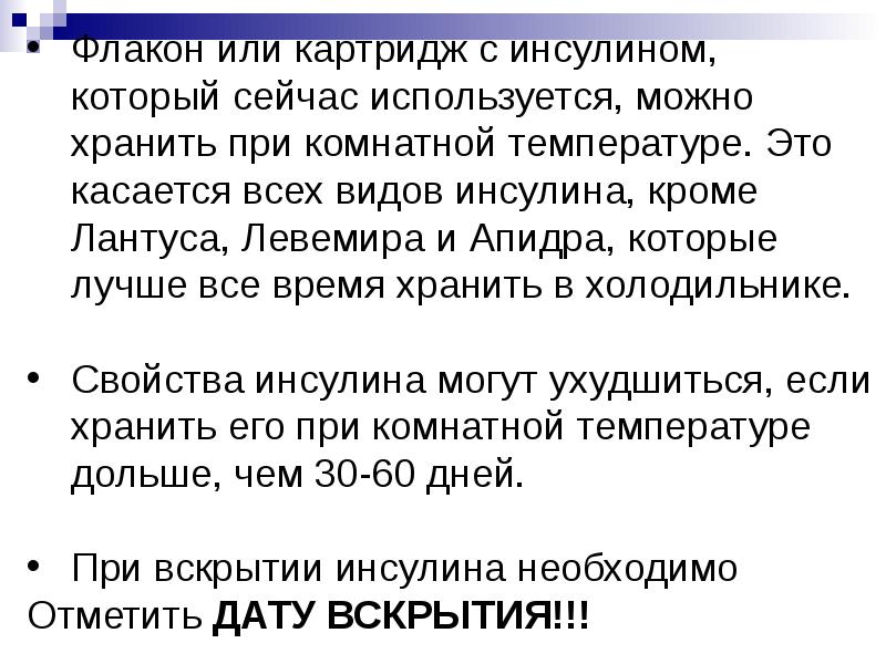 - 27. Условия хранения инсулина: