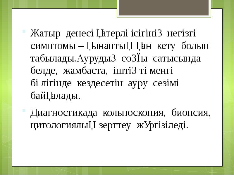 - 14. Жатыр мойны мен денесінің қатерлі ісігі