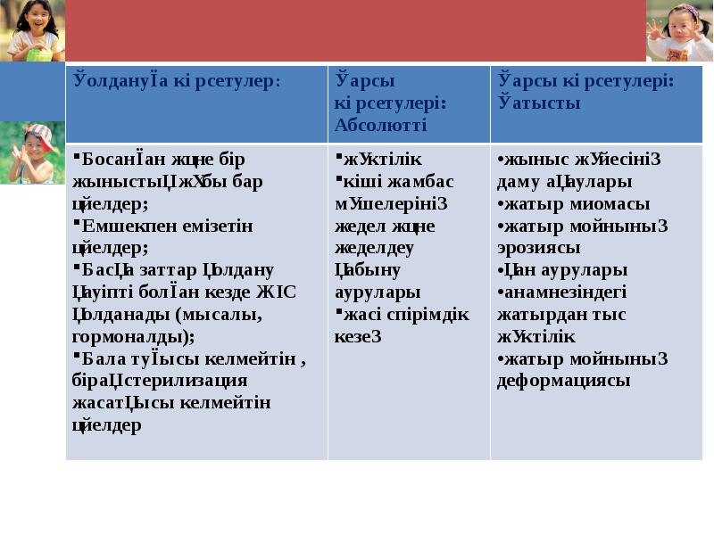 - 6. Контрацептивтерге қойылатын талаптар: Жоғары контрацептивтік нәтижелі болу; Әйел организмі мен жыныстық