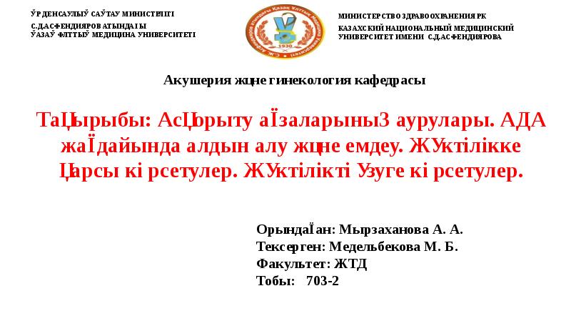 Орындаған: Мырзаханова А. А. Тексерген: Медельбекова М. Б. Факультет: ЖТД Тобы: презентация