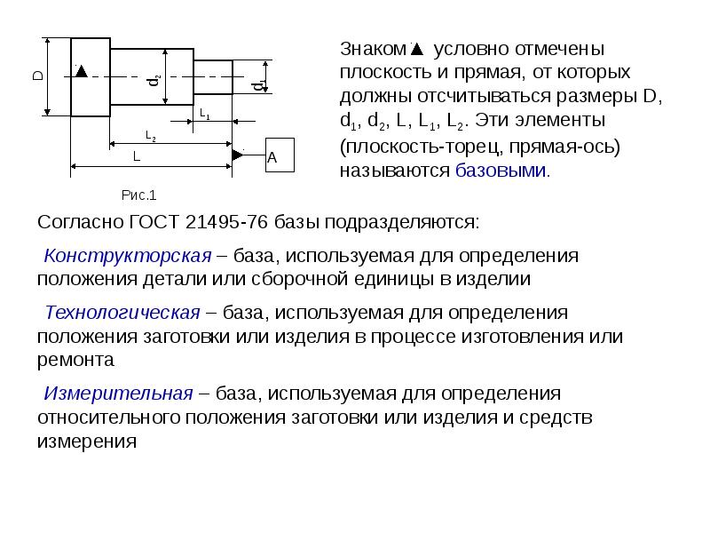 - 4. 4.1. Понятие о базах в машиностроении и способы нанесения размеров на