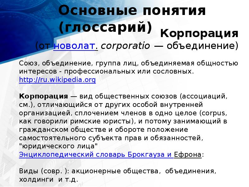 - 6. Корпорация – организация, удовлетворяющая следующим принципам