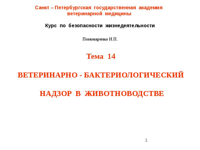 1 Санкт – Петербургская государственная академия ветеринарной медицины Курс по презентация