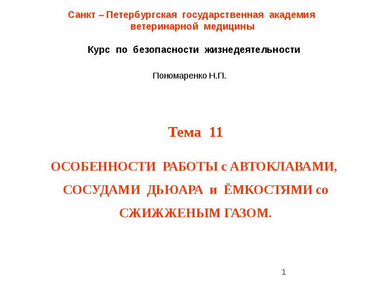 1 Санкт – Петербургская государственная академия ветеринарной медицины Курс по презентация