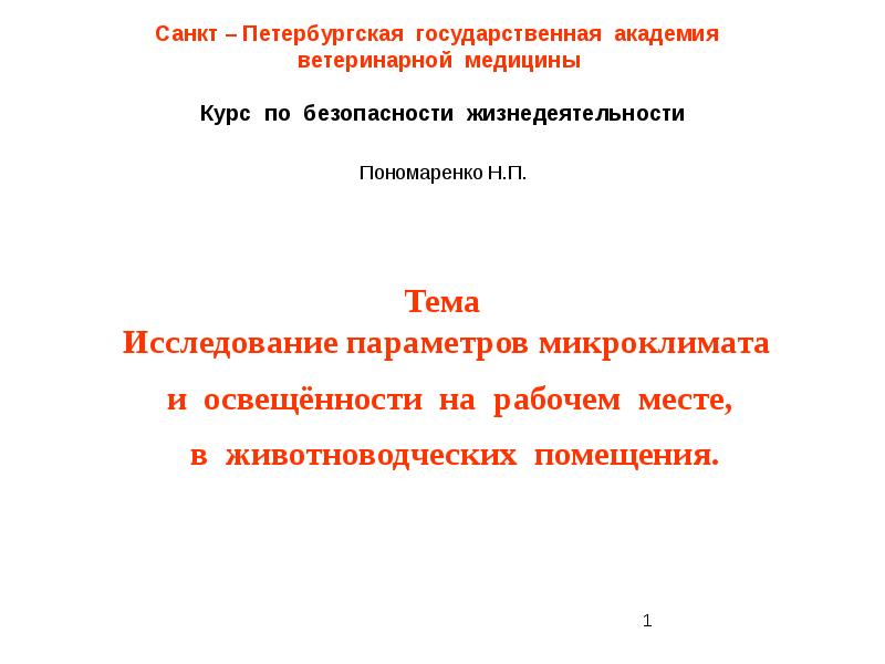 1 Санкт – Петербургская государственная академия ветеринарной медицины Курс по презентация