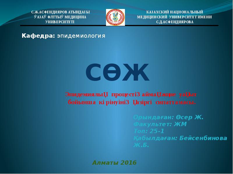 С.Ж.АСФЕНДИЯРОВ АТЫНДАҒЫ ҚАЗАҚ ҰЛТТЫҚ МЕДИЦИНА УНИВЕРСИТЕТІ КАЗАХСКИЙ презентация